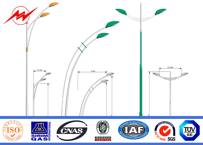 12M Double Arm 4mm Parking Lot Light Pole With 1.5M Cross Arm 0