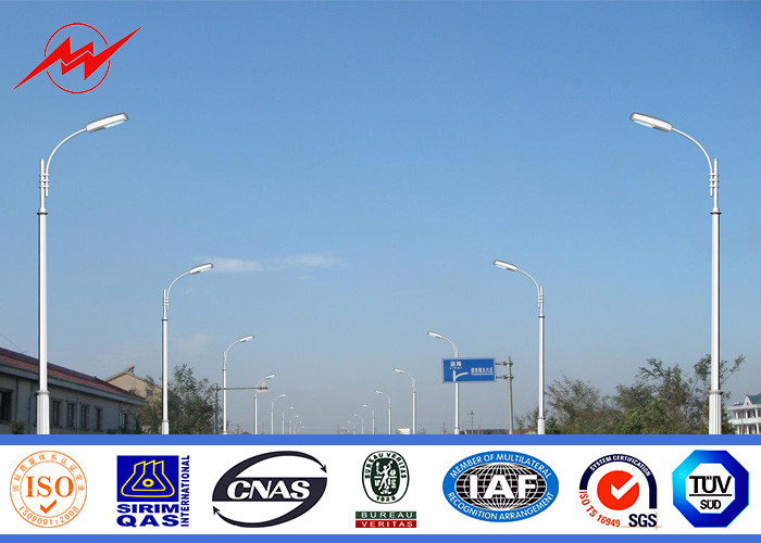 Hexagonal 5m Powder Coating Galvanized Steel Pole One Section with One Cross Arm