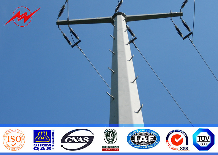 High Voltage Tapered Galvanized Steel Utility Pole 3mm Thickness With Climging Bolt