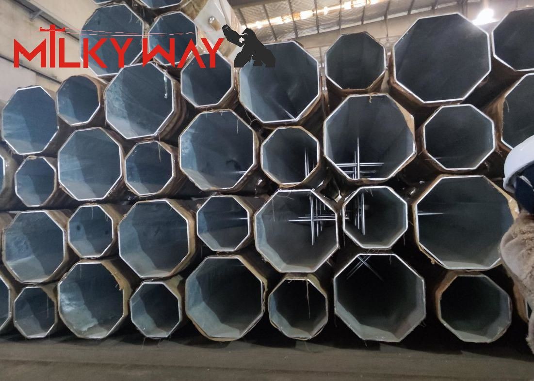 90 फीट तीन-खंड गैल्वेनाइज्ड गोल मोनोपोल टावर – टिकाऊ स्टैप्ड बोल्ट कनेक्शन